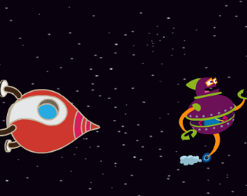Objetivo da Nave é conseguir atirar no robô que se movimenta de modo sagaz para desviar dos tiros.